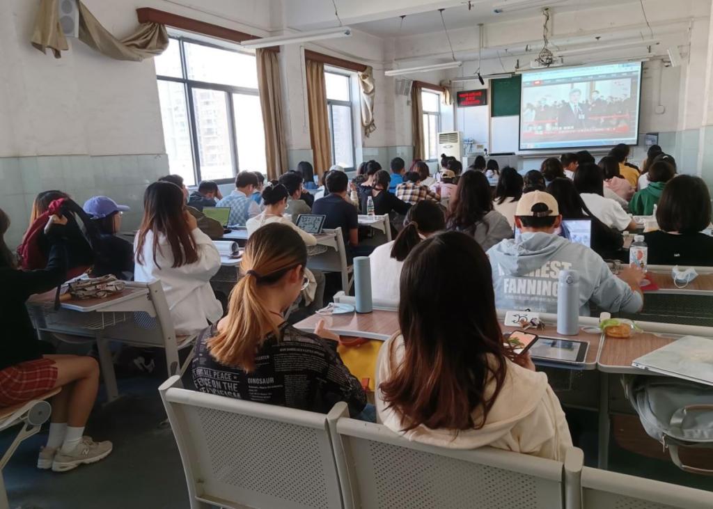 10月16日上午10:00,中国共产党第二十次全国代表大会开幕会在人民大会堂大礼堂举行。公司党委书记郑全新、副书记张梦婵,副经理邹爱华、江岚,党员教师、员工党员、第三期团校学员、员工干部200余人在公司三楼会议室、教2-206、教2-208、教2-511教室集中收听收看党的二十大开幕会盛况。
