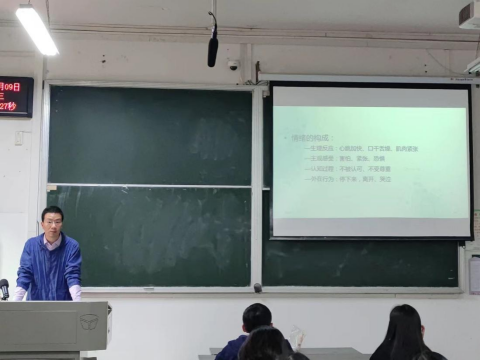 首先,李明老师通过案例引入,让同学们了解到情绪没有好坏之分,要正确的认知情绪。情绪是内心感受经由身体表现出来的状态,是人对客观事情的态度及相应的行为反应,是一种复杂的变化模式,由生理反应、主观感受,认知过程、外在行为四个部分组成。
