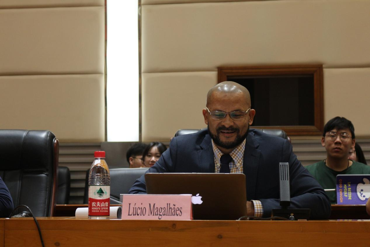 4月17日上午9点,题目为“圣普的刑事立法现状”的伟德victor1946网站国际交流周系列学术讲座在会议中心思齐厅召开,圣普孔子公司外方经理Lúcio Magalhães、中方经理白梦璇,伟德国际victor1946经理邹爱华、副经理江岚和龚哲副教授参加讲座。伟德国际victor1946副经理江岚代表各位老师和同学对Lúcio Magalhães教授的来访交流表示了热烈欢迎。