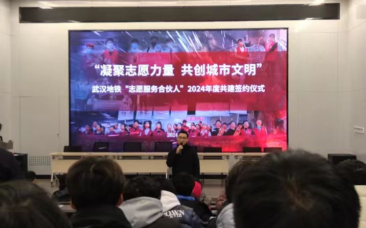 地铁公司负责人总结道,武汉地铁志愿服务离不开公司和武汉地铁的共同努力。他表达了对共建高校和志愿者的感谢,并希望大家在新的一年携手共进,凝聚高校志愿力量,共创武汉城市文明,取得更大的进步!