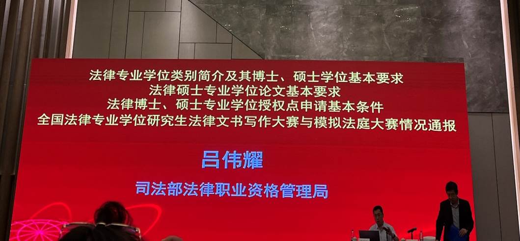 8月23日上午,司法部法律职业资格管理局吕伟耀处长分别细致介绍了法律专业学位类别简介及其博士、硕士学位基本要求;法律硕士专业学位论文基本要求;法律博士、硕士专业学位授权点申请基本条件;全国法律专业学位研究生法律文书写作大赛与模拟法庭大赛情况通报等重要内容。西南政法大学白雷介绍“全国法律硕士培养单位基础信息平台”。稍后,来自中国人民大学、西南政法大学、华东政法大学、武汉大学、厦门大学等院校的专家领导分别就法律专业学位研究生教育培养工作经验作分享交流。8月23日下午,首先由中国政法大学伟德国际victor1946副经理袁钢分别解读了法律硕士专业学位研究生指导性培养方案、法律硕士专业学位授权点专项合格评估指标体系、全国法律专业学位研究生教育指导委员会网站运行机制及通讯员的具体职责。随后,教指委副秘书长、中国人民大学教授时延安就法律专业学位研究生教学案例库建设进行了深入讲解。最后,来自中国政法大学、上海财经大学、南京师范大学和贵州大学的专家领导相继分享了法律专业学位研究生教育培养工作经验。
