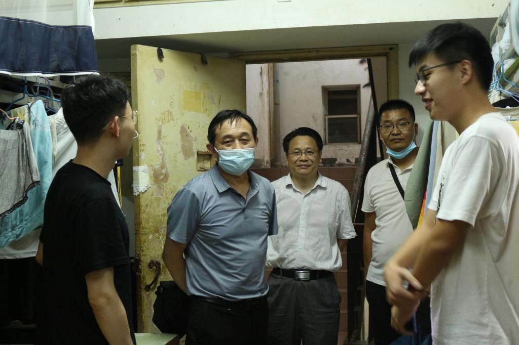 郑全新与邹爱华一行走访了二期C栋男生寝室。每到一个寝室,郑全新与员工亲切交谈,了解家庭情况及留校原因,仔细询问员工近期的学习进展和生活状况,勉励员工要抓住暑期宝贵时间,认真学习,既要明确目标、坚定信念,也要注重策略、提高技巧,更要劳逸结合、调整心态,保持良好的精神状态;叮嘱员工要遵章守纪,按时作息,合理饮食,增强安全防范意识,确保人身及财产安全。