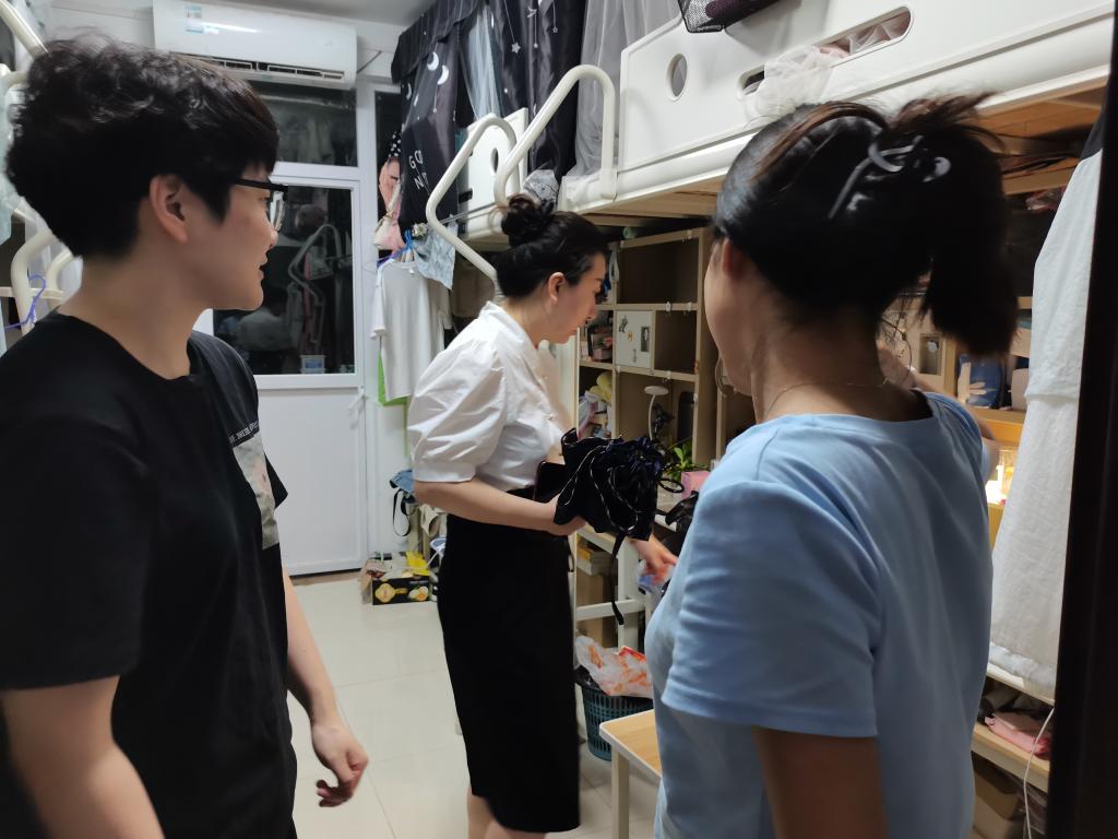 张梦婵与江岚一同挨个走访了二期E栋留校女生寝室。与每个同学交心谈心,了解员工目前的目标规划,关心他们考研准备情况,学习生活环境等,为同学们备考提供了可行性建议,嘱咐同学们要养成良好的作息规律,劳逸结合,不慌不忙不燥不急复习备考。