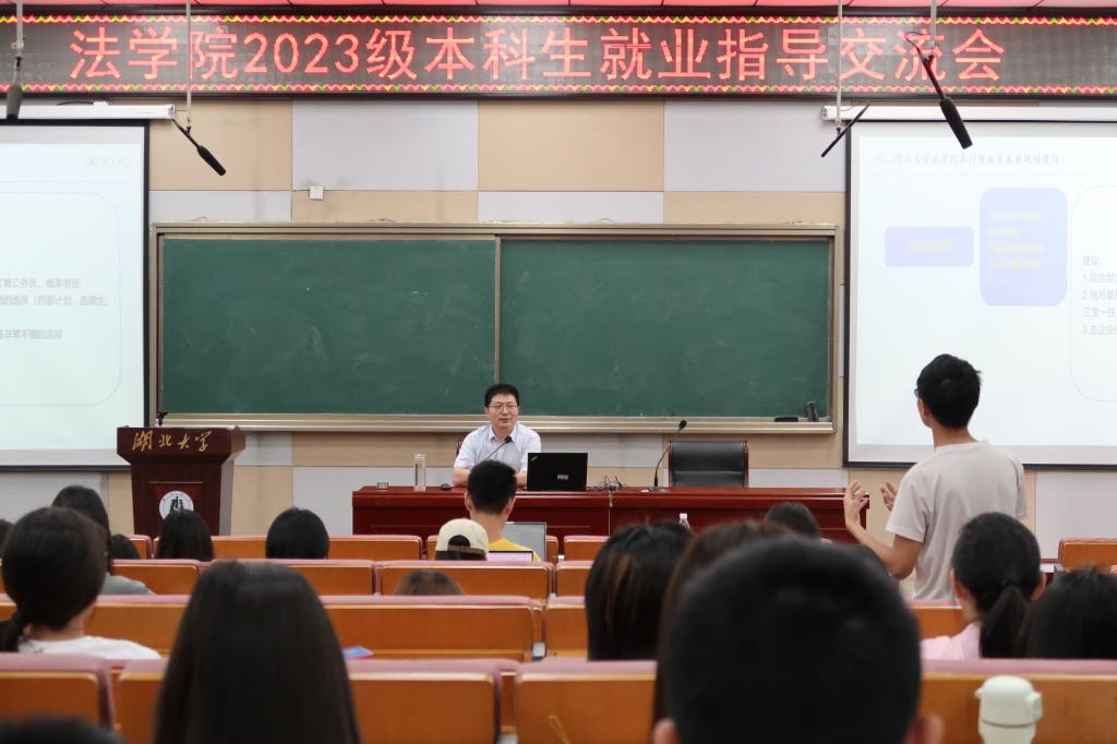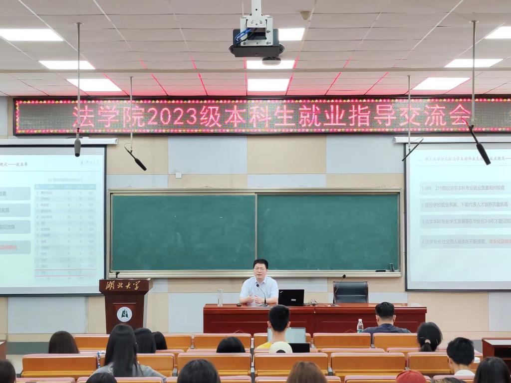 为帮助大一员工提早树立生涯规划意识,提高本科生对就业新形势基本认知,伟德国际victor1946于2024年6月7日上午在阳逻校区召开了伟德国际victor19462023级本科生就业指导交流会。伟德victor1946网站法公司党委书记王雄主持本次会议,伟德国际victor1946团委书记郭童、问齐书院辅导员刘冬雪、问学书院辅导员史健桥以及伟德国际victor19462023级全体同学参加会议。