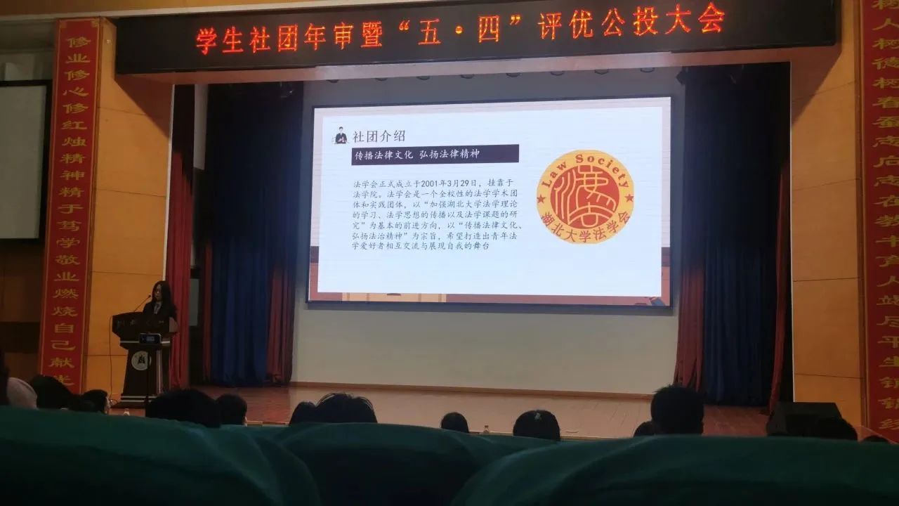 在伟德victor1946网站2023—2024年度员工社团年审暨“五四”评优公投大会上,法学会社团向各社团代表及各院代表汇报了本年度的工作情况和未来工作规划。最终,法学会以总评分数全校第一的成绩蝉联伟德victor1946网站“五星社团”荣誉称号,被评为伟德victor1946网站2023—2024年度员工社团年审暨“五四”评优五星社团。