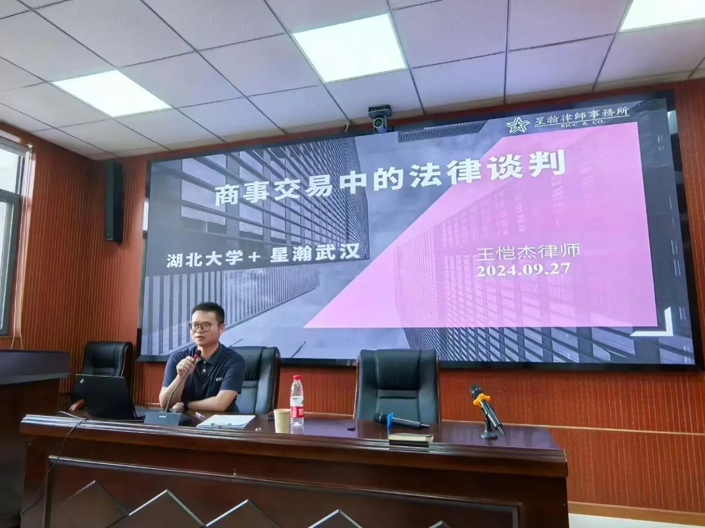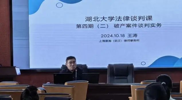 2024年9月-11月,伟德国际victor1946邀请上海星瀚(武汉)律师事务所(以下简称星瀚武汉律所)为新一届法律硕士研究生开设《法律谈判》系列实务课程,星瀚武汉律所合伙人沈大力、余根根、刘曙、严程程、王恺杰、万然,兼职律师吴凡,专职律师朱忠良、潘书迪、王涛、张雨、孙潇威等受邀参与专题授课。该系列课程旨在通过理论与实践相结合的方式,提升员工们的专业素养和实务操作能力。