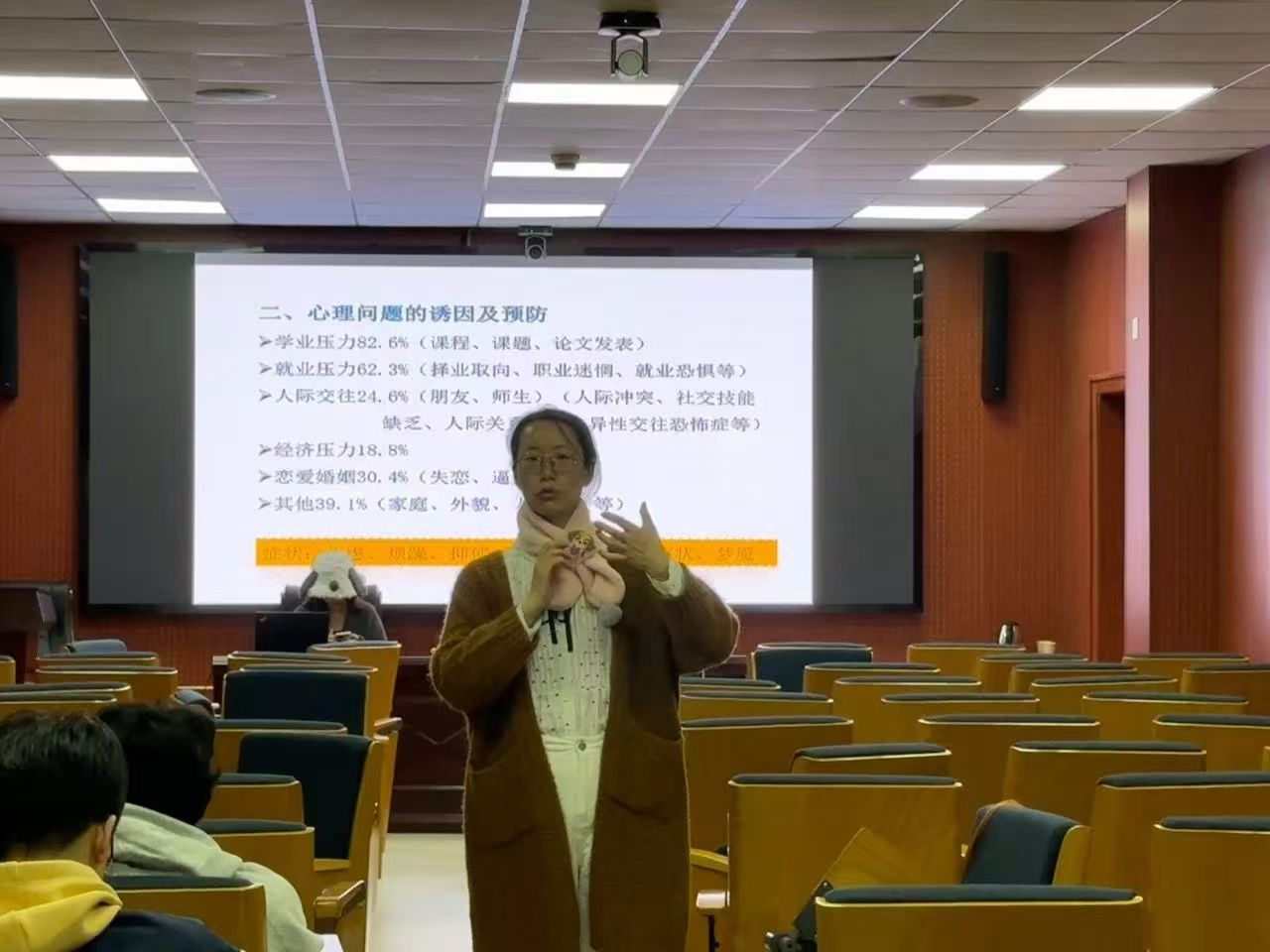 2024年11月1日晚,为提升研究生心理健康意识与自我调适能力,尽快适应研究生生活,公司特邀伟德victor1946网站员工心理健康教育与资讯中心高杰老师为研究生开展以《研究生心理问题识别与预防》为主题的心理健康讲座。