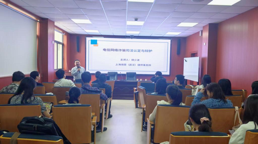 江岚老师对本次讲座做了总结发言。江老师指出电信网络诈骗在现实生活中频发,相较于一般的诈骗犯罪而言具有特殊性。在实务办案过程中,此类案件的资金追回难度较大。因此,无论是从专业的角度,还是作为在校员工而言,都要引起我们的高度重视。最后,江老师再次对上海靖霖(武汉)律师事务所胡少波主任一行莅临湖大授课表示感谢。(审核:江岚)