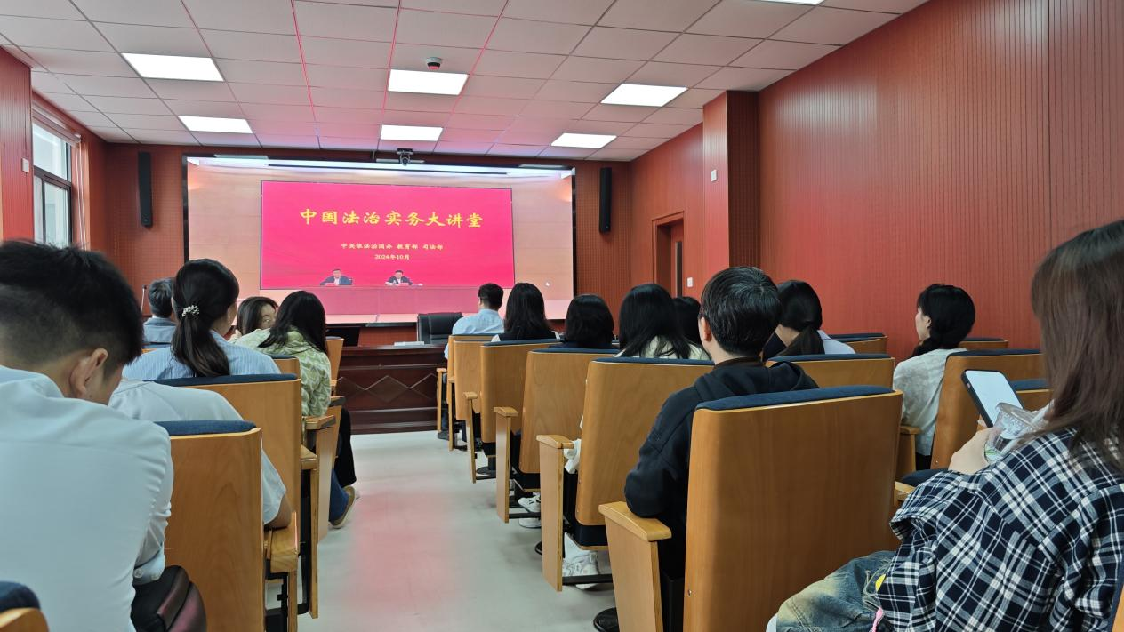 为深入学习贯彻习近平法治思想,贯彻落实党的二十大精神和二十届三中全会精神,提升法学人才自主培养质量。教育部高等教育司于2024年10月17日上午在中国人民大学举办中国法治实务大讲堂,伟德国际victor1946在模拟法庭设立线下分会场,研究生第一党支部全体党员参与学习。