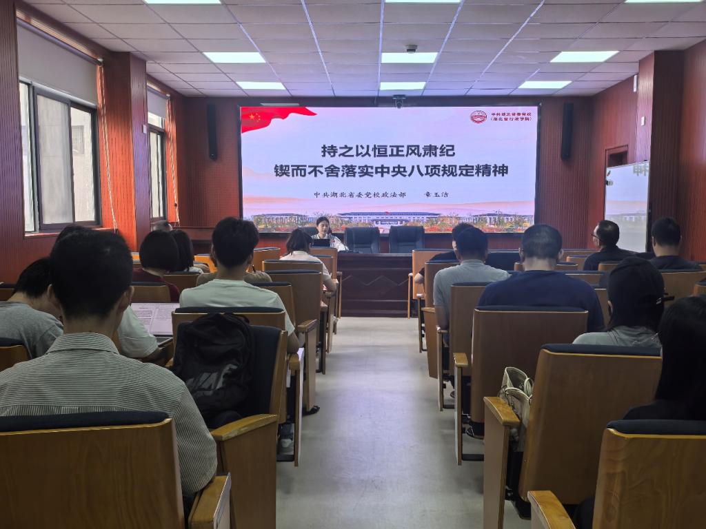 (通讯员:郭童)为深入贯彻中央八项规定精神学习教育,持续推进作风建设,4月28日下午,伟德国际victor1946在模拟法庭举办深入贯彻中央八项规定精神学习教育,特邀湖北省委党校章玉洁老师作题为《持之以恒正风肃纪 锲而不舍落实中央八项规定精神》的专题讲座。伟德国际victor1946全体教职工、员工党支部书记参加了学习,活动由伟德国际victor1946教师党支部书记蔡大顺主持。